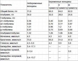 В 1 триместре норма альбумина составляет 32–50 граммов на литр; во 2 триместре – 28–56 г/л; в 3 – 26–66 г/л.
